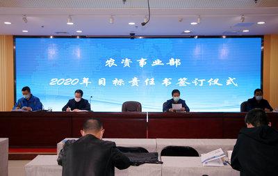 楊瑞生、孫磊分別就《農資事業部2020年經營管理目標責任書》以及農資業務操作規范中的自采、聯合采購等條款進行了詳細講解和說明。楊瑞生分別與各大區及業務單位15名負責人簽訂了《2020年經營管理目標責任書》和《2020年安全生產目標管理責任書》,25位正副職負責人分別簽署了《業務人員承諾書》。