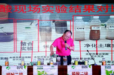 王震詳細介紹了聚谷氨酸二銨產品的研發過程、適應作物品種、功能特點、使用方法及使用效果。聚谷氨酸二銨具有超強親水性與保水能力,能夠促進磷肥與中微量元素吸收,平衡土壤酸堿值,螯合土壤中有毒重金屬,增強作物抗病及抗逆境能力,達到促吸收、保水分、調酸堿、保豐收的效果。通過聚谷氨酸新型二銨使用效果對比和各項數據測試表明,肥料作用明顯,達到了為農民降低成本、增產增收的目的?,F場實驗更是讓與會者直觀感受到聚谷氨酸二銨的強大功效,幫助大家對產品有了更清楚的了解。