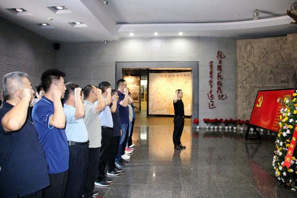 在晉察冀邊區革命紀念館,黨委書記馬朝輝帶領全體黨員重溫入黨誓詞,一句句鏗鏘有力的誓言,表達著黨員們繼承英烈遺志,永葆政治本色的堅定理想信念。