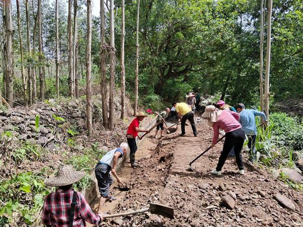 廣西武宣縣東鄉鎮屯應村黨員干部與群眾一起修水渠抗旱。雷正曉 攝