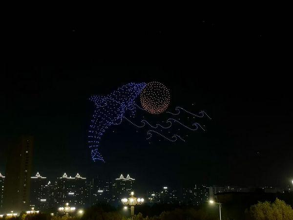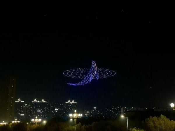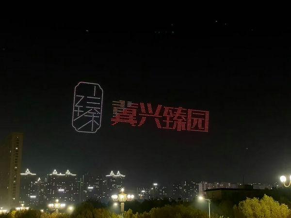19點(diǎn),無(wú)人機(jī)編隊(duì)表演拉開序幕。千架無(wú)人機(jī)如星河般升空,在夜空中排列出 “千年儒鄉(xiāng) 一湖靈秀”、“我愛衡水”、中國(guó)龍、鳳凰、藍(lán)鯨等多種圖案,將冀興臻園與城市共進(jìn)、共建理想家園的美好遠(yuǎn)景集中呈現(xiàn)。