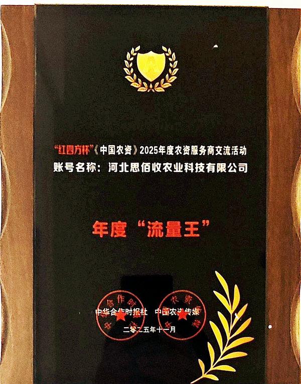 ? 同日,由中華合作時(shí)報(bào)社、中國農(nóng)資傳媒主辦的“‘紅四方杯’尋找流量王 ·《中國農(nóng)資》2025年度農(nóng)資服務(wù)商交流活動(dòng)暨《國肥之光第二季》”在南京舉行。會(huì)上發(fā)布了2024-2025年度農(nóng)資服務(wù)商典范企業(yè)名單及年度“流量王”名單,集團(tuán)公司榮獲“農(nóng)資保供典范企業(yè)”榮譽(yù)稱號(hào),旗下河北思佰收農(nóng)業(yè)科技有限公司視頻號(hào)榮獲年度“流量王”榮譽(yù)稱號(hào)。