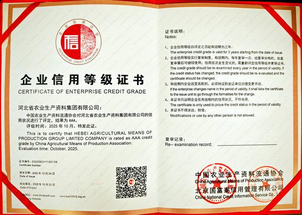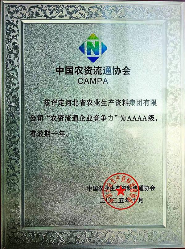 本網(wǎng)訊 11月4日,中國農(nóng)業(yè)生產(chǎn)資料流通協(xié)會(huì)在江蘇省南京市召開“2025年度中國農(nóng)資經(jīng)銷商年會(huì)”。會(huì)上發(fā)布了“2024/2025中國農(nóng)資流通行業(yè)發(fā)展報(bào)告”,公布了2025年度中國農(nóng)資流通企業(yè)信用等級(jí)評(píng)價(jià)結(jié)果、2025年度農(nóng)資流通企業(yè)競(jìng)爭(zhēng)力評(píng)價(jià)及農(nóng)資行業(yè)知名品牌認(rèn)定結(jié)果。集團(tuán)公司被評(píng)為“AAA級(jí)信用企業(yè)”,同時(shí)榮獲“2025年度農(nóng)資流通企業(yè)競(jìng)爭(zhēng)力AAAA級(jí)”,“冀農(nóng)”品牌被評(píng)為‘“AAA”級(jí)農(nóng)資行業(yè)知名品牌(產(chǎn)品類)。
